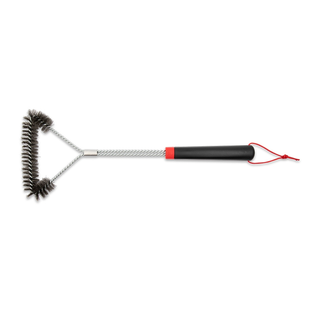 Weber's Round Grill Brush Three-Sided 46cm has three sides and is built to remove grease and food residue from grill grates of all sizes. With stainless steel bristles that make cleaning even easier and a string so you can hang it on your grill. The handle design provides a secure grip when brushing away stuck-on food or cleaning tight spaces. Use it to clean your grates before each use, so your grill lasts longer and each meal tastes as good as the next!