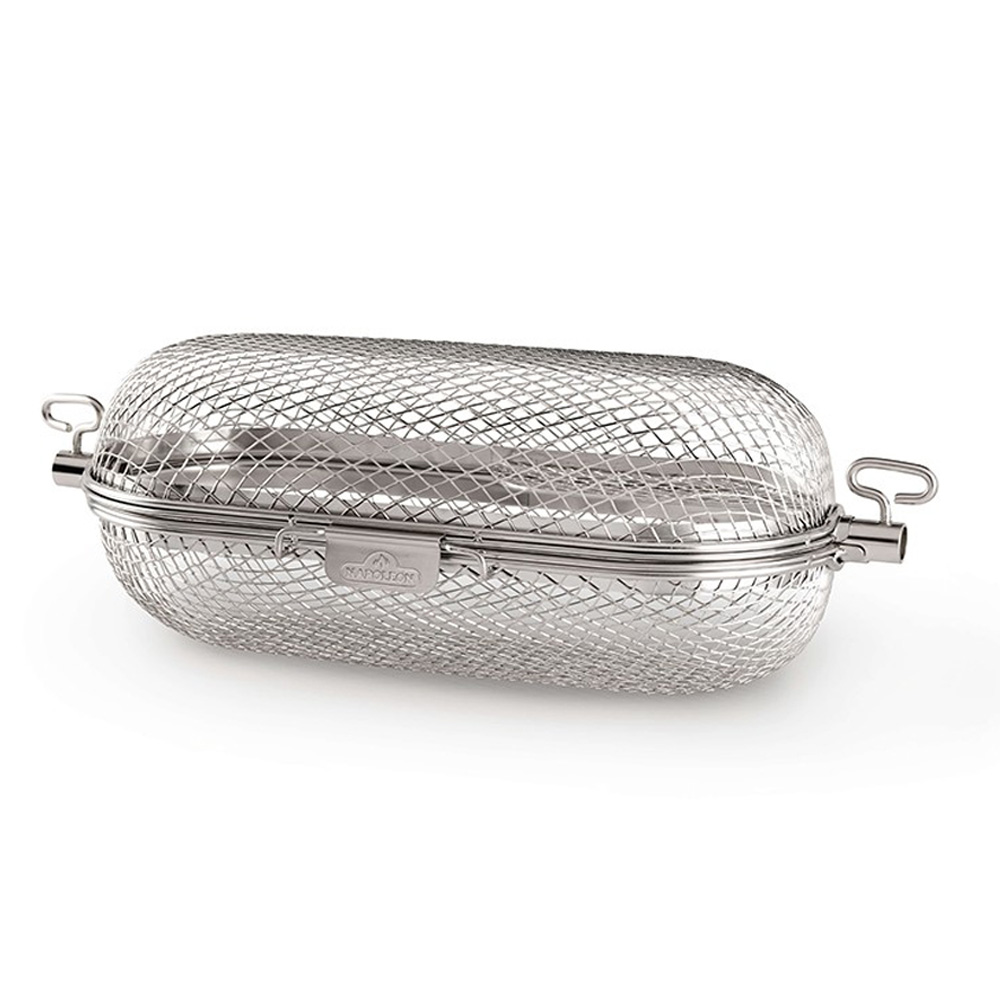 The Napoleon® electric rotisserie grill basket is specially designed to cook smaller pieces of meat, potatoes, vegetables and even popcorn without the stress of loosing food through the gaps. You do not need to add oil or fat, so your dishes are prepared healthy, but still remain crisp.