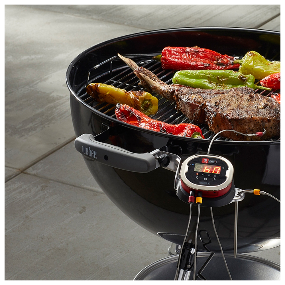 The Weber®️ thermometer stand will allow you to adjust the iGrill thermometers on your charcoal grill as it is very easily mounted on the grip handle.