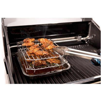 This Broil King® Stack-A-Rack is a multi-purpose rack that is designed to elevate foods to create more cooking space when roasting and smoking. Notched feet are designed to rest on grid tines and stack.