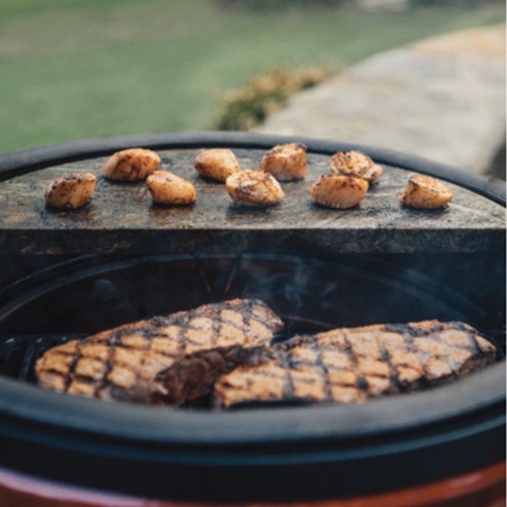 Kamado Big Joe Soapstone (BJ-HCGSSTONE) for tender meat & delicate fish. Antibacterial surface, flare-up prevention & even heat distribution.