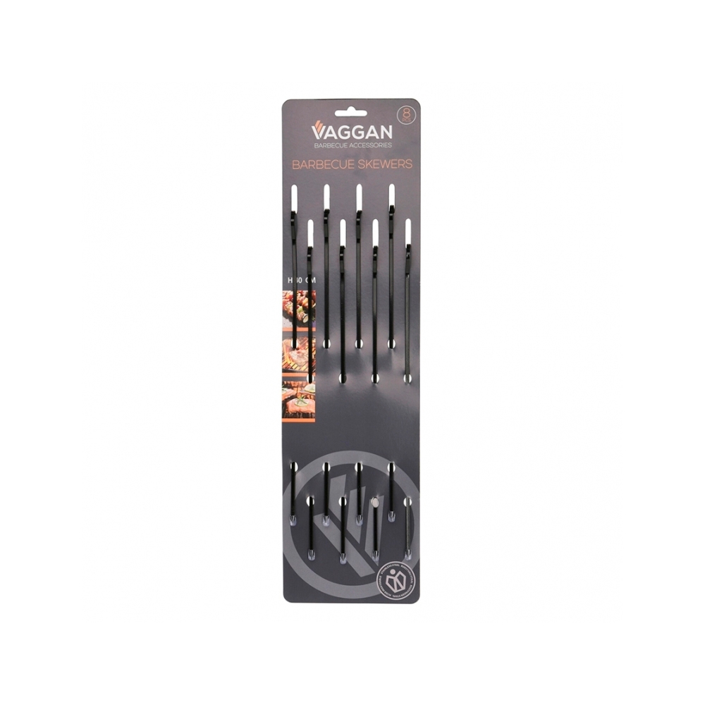 The eight metal barbecue skewers from Vaggan are made of stainless steel and feature a non-stick coating to facilitate easy grilling. With a length of 40 cm, these skewers help you prepare delicious and perfectly grilled pieces of meat for your barbecue. Enjoy their high quality and durability while savoring great flavors every time you grill!