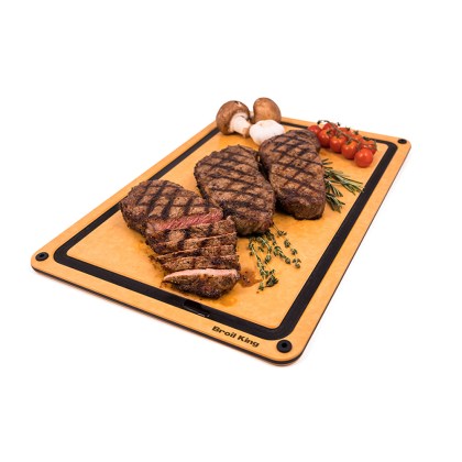 Prepare, transfer and serve your food right from the grill, on this Broil King® double sided wood fiber cutting board.
