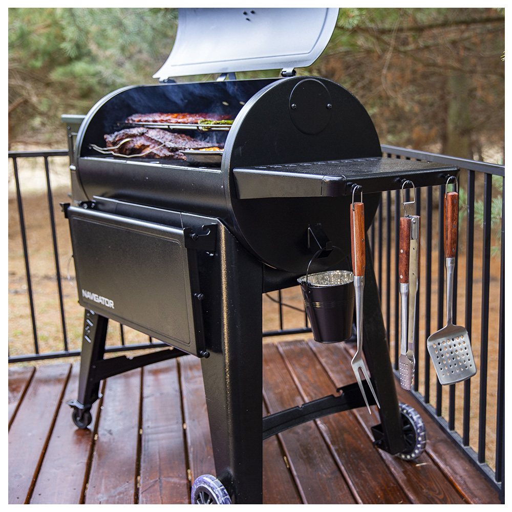 Pit BossThe Pit Boss 1150G Navigator Series is the ultimate grilling experience for the modern handyman, ergonomically designed to provide less strain and more usability. With advanced grilling technology, premium-grade steel builds, and 100% all-natural hardwood pellet fuel, enjoy Bigger.Hotter.Heavier features that can only come from a Pit Boss® grill.