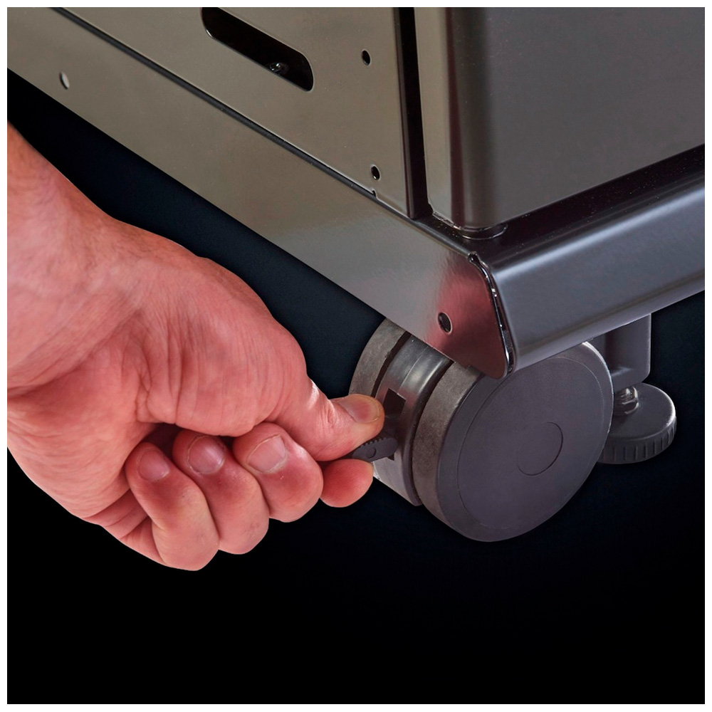 - 4 lockable swivel castors, 2 of which are height adjustable