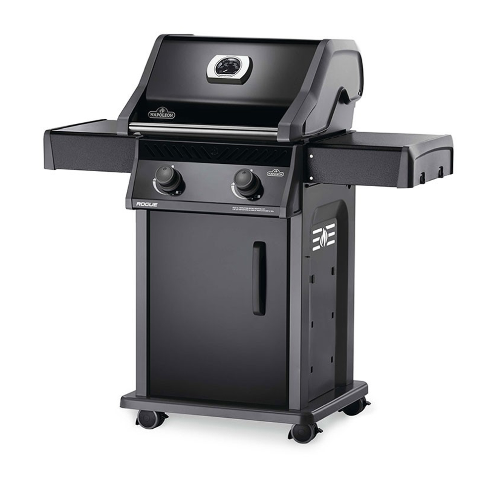 NapoleonNapoleon® Rogue 365 gas grill, Black, is the ideal grill for those looking for a barbecue of exceptional quality at an affordable price. It has two burners that provide plenty of heat to the cast iron grids and a Jetfire ignition system that guarantees reliable and fast ignition of the burner. The elegant black finish with high weather resistance and specially designed for ease of cleaning.