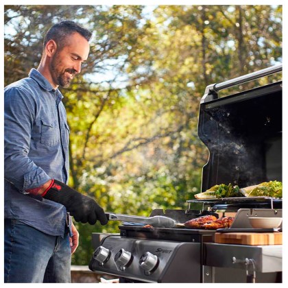 Fresh morning air infused with bacon on the griddle, followed by an evening dinner that slows down time. Starting and ending your day in the garden with the people who matter most, cooking on your Spirit E-325 GBS gas barbecue.
