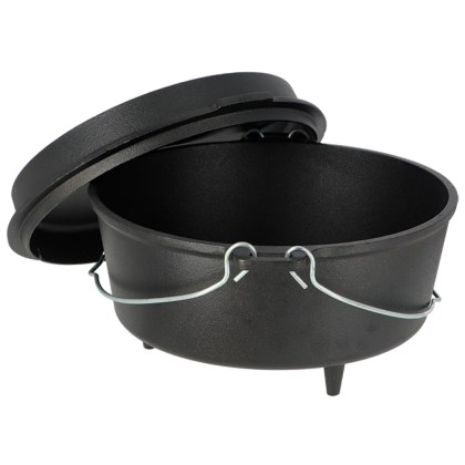 A Dutch oven is a traditional thick-walled cooking pot made of cast iron and has been used for many centuries, the cast iron construction ensure that heat is spread evenly across the Dutch oven heating the food from all sides.