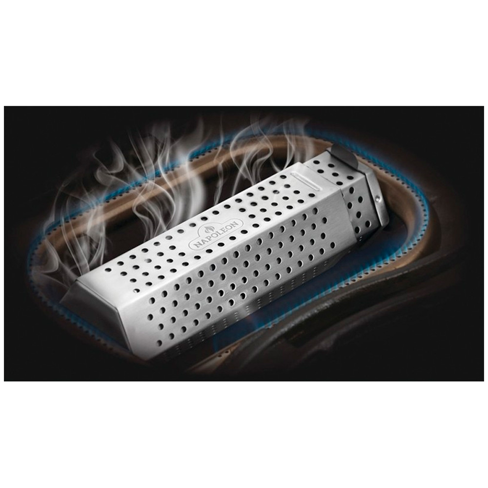 NapoleonΑναβαθμίστε τη γεύση στο BBQ σας με το Κουτί Καπνίσματος της Napoleon, το απόλυτο εργαλείο για να μετατρέψετε οποιαδήποτε ψησταριά σε καπνιστήρι. Κατασκευασμένο από ανοξείδωτο ατσάλι και με έξυπνο εξαγωνικό σχήμα, εφαρμόζει τέλεια πάνω στις πλάκες ή ανάμεσα στους καυστήρες, προσφέροντας σταθερότητα και ομοιόμορφη κατανομή του καπνού.