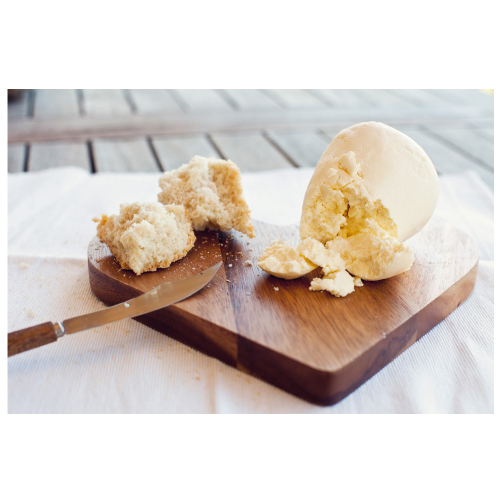Παράγεται κυρίως από αγελαδινό γάλα, είναι λευκό, συμπαγές, με βουτυράτη γεύση .