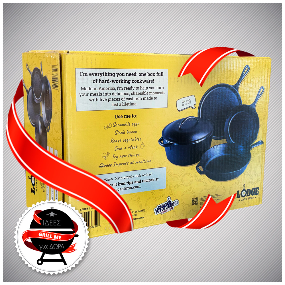 LodgeΤο ΣΕΤ μαντεμένιων σκευών 5 τεμαχίων της Lodge συνδυάζει όλα τα απαραίτητα μαντεμένια σκεύη για μια ολοκληρωμένη κουζίνα στο σπίτι σας. Αυτό το ΣΕΤ αποτελεί και μια πολύ καλή επιλογή για δώρο που θα συντροφεύει τα αγαπημένα σας πρόσωπα για χρόνια.